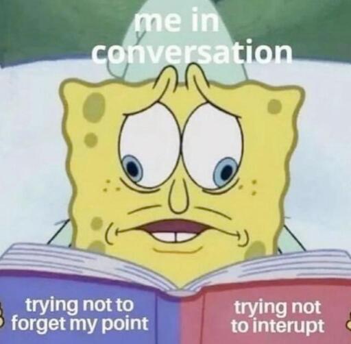 The only person who I consistently kinda force to listen to my rants that go for at least 30 mins at a time is my wife. When I’m talking to other people, usually my point and what they’re talking about are part of the same conversation so it’s not that hard to remember it.