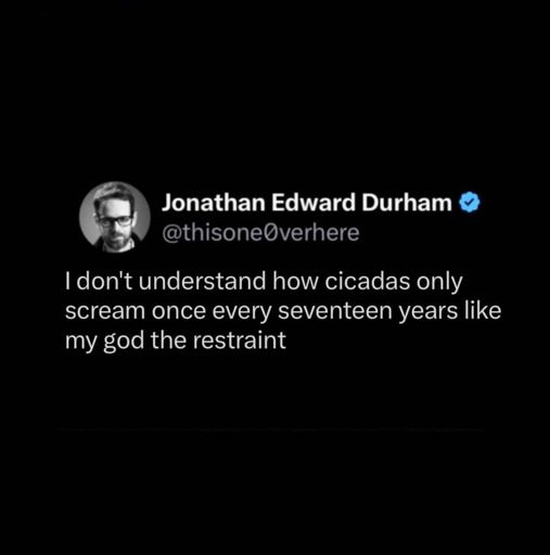 they have no mouth and they must not screamIf I lived in the nice dark underground, suckingb down sap from tree roots, and oblivious to the outside world for my entire childhood then I too would be content and scream-free too
