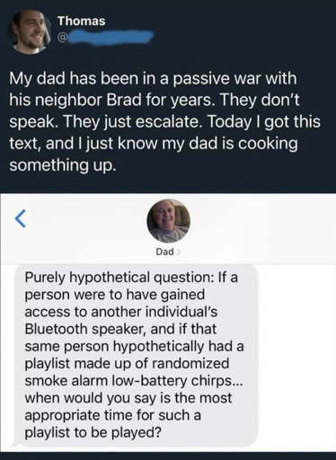 Seems like a perfect opportunity to ram ranch him, but the smoke alarm chirps are solid and potentially longer lasting