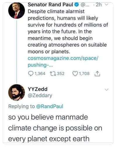 “humans will survive for hundreds millions of years. But I’ll be long gone in like 40 and I’ll have gotten everything I every wanted. So change nothing, and fuck you.”