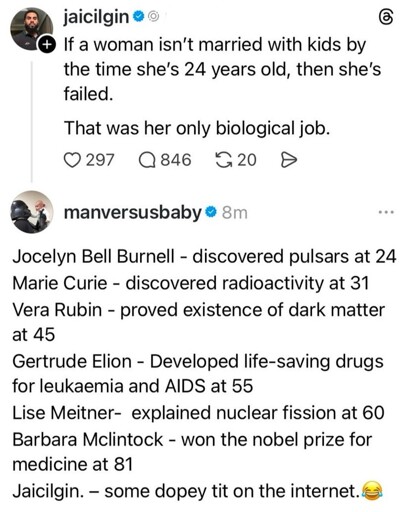 Even if we had it, imagine how small your life is if you actually believe we are born to do a biological job.