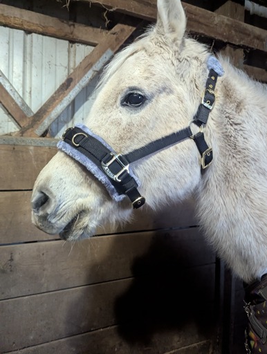 It’s a special halter for exercising that gets a horse to hold themselves a certain way when on a lunge line. If it works like I hope, Sandy will utilize her back end muscles more during exercises and can hopefully help her get a lil muscle on her booty.