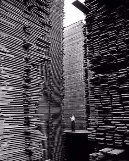 This begs so many Q’s-- how did they stack it that high? Could you actually pull material from the bottom, and due to the way the wood is stacked, the whole thing was as stable as ever? Did major accidents happen with this approach?