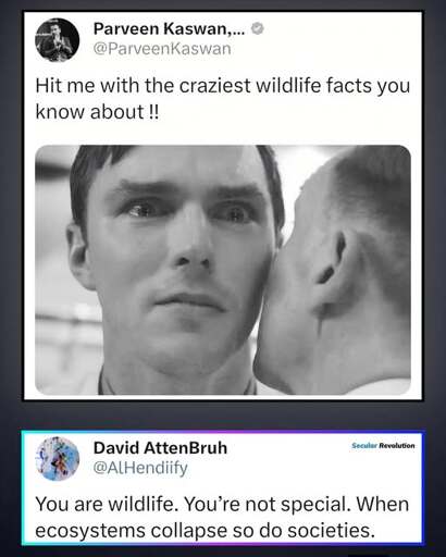 The number of ppl who don’t understand this is truly stunning. For some reason ppl think being superior to nature is desirable. It is foolish at best, catastrophic otherwise.