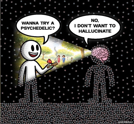 If you took mushrooms and saw purple you’d be hallucinating. Your brain is giving you false information.