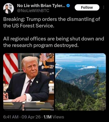 I’m sure this isn’t really about saving money. It’s about destroying the US Forest Service. That’s the direct goal.