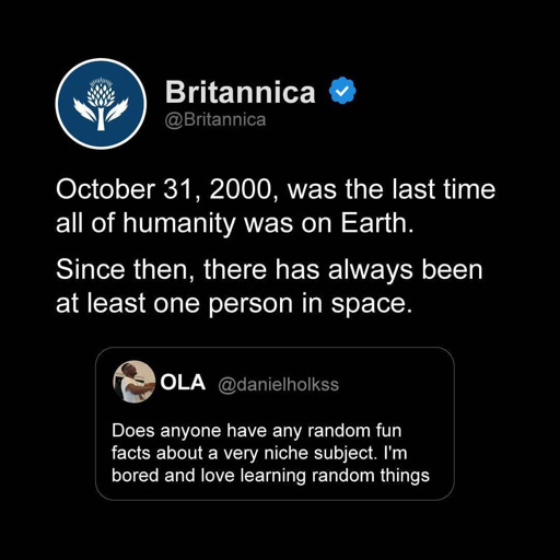 Imagine being the one and only person in space. I consider myself a pretty extreme loner, but even I think that would be terrifying.