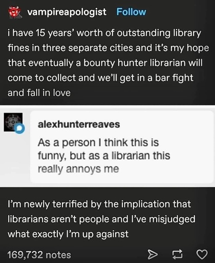 The Picard Maneuver@lemmy.world to Funny: Home of the Haha@lemmy.world · 18 days agoLibrarianslemmy.worldimagemessage-square50linkfedilinkarrow-up1637arrow-down16