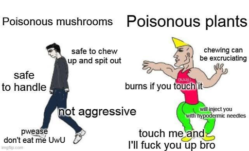 minus-squareUnpigged@lemmy.dbzer0.comlinkfedilinkEnglisharrow-up0·1 month agoAlso mushrooms: you look at me and your liver is ded.