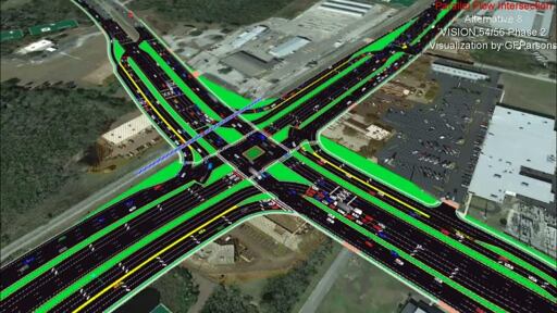 Parallel flow intersection (PFI) concept microsimulation video for Pasco County, Florida VISION 54/56 Phase 2 alternatives evaluation.This latest version (v3...