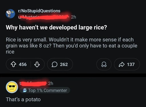 minus-squaredalekcaan@feddit.nllinkfedilinkarrow-up8·1 month agoSo that’s why it’s called a potato ricer.