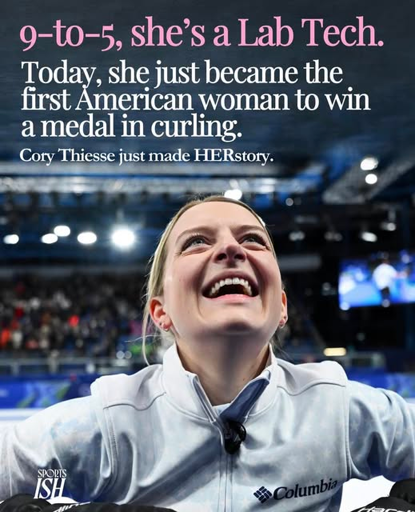 This is Cory Thiesse, who won silver in “mixed doubles curling”, with her curling partner Korey Dropkin on February 10th.