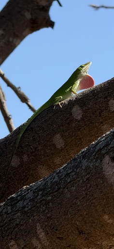 The green anoles around my area of Florida were everywhere when I was a kid, but now they have pretty much been driven out by brown anoles that were imported from Cuba. I think I have seen maybe 3 green anoles in the last 10 years. Crazy to think they were so easily driven out by an invasive species.