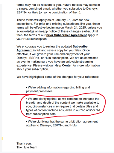 GoofSchmoofer@lemmy.world to Mildly Infuriating@lemmy.worldEnglish · 1 year agoThe new Hulu Subscriber agreement just dropped - Don't like ads too bad.lemmy.worldimagemessage-square0linkfedilinkarrow-up11arrow-down10